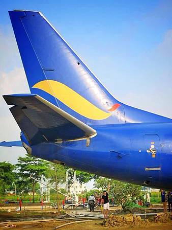 這架波音737飛機,不知道日後會以怎樣的風貌呈現,也許會營業也說不定。畢竟在鄉下地方出現這龐然大物,真的也是蔚為奇觀,當然也不少民眾路過來拍拍照,畢竟難得有機會可以這麼近距離地接觸到飛機。實在是太奇特了這景觀!
