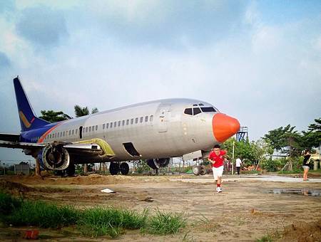 這真的是太扯了!竟然在臺南鹽水的鄉下田野間,赫然發現一架波音737飛機?!