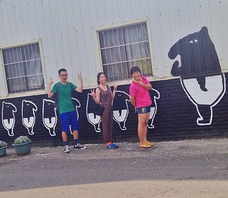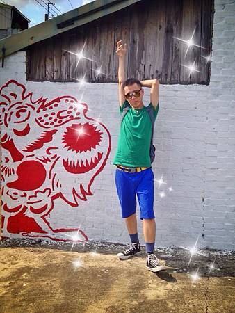 雖說是彩繪村,但其實也不過是一條百公尺的巷弄街道。因為天氣實在是太過燥熱,就沒有再往更裡頭走走看看,只想要趕快去芒果的故鄉玉井吃芒果冰。再往前走仍有龍貓、機器人、馬賽克等等其他的彩繪圖樣。期間也有在地的鄉親朋友熱情地問我們說,有去過關廟的嗎?永康也有唷!嗯...雖然當下覺得彩繪村也是滿氾濫的,但生活不就是要再增添多一些色彩嗎?只好來個毫無恥度的照片當作Ending威鎮全場了無新意的觀光客。XD