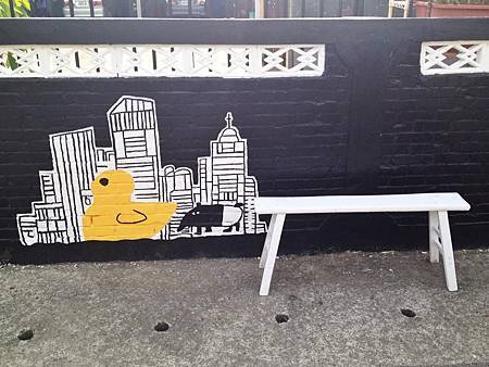 轉進牆邊的小巷子裡,便是整面牆的V Air威熊!還有倒立的龍貓、跟莫名違和的「福」字樣。XD