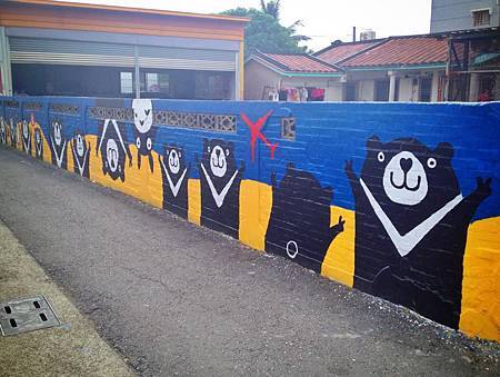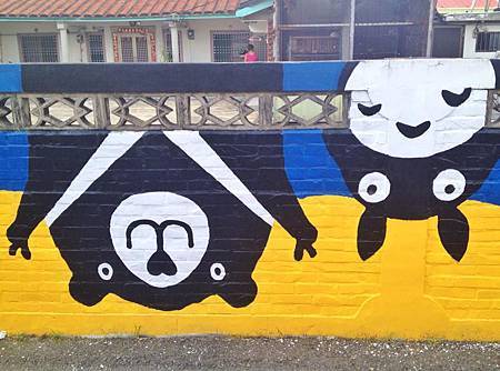 一系列可愛的圖案,馬來貘、V Air威熊、龍貓等等,雖然說這裡的彩繪並未與社區發展有什麼關聯,就是以可愛的圖樣滿足了現代人走馬看花、拍拍就走的觀光型態。但最初的意義仍然是令人感到溫馨的,不就是要讓住在這裡的人們感到快樂嗎?