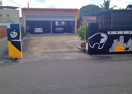 同樣是鄉村小路,Google設定了善化陽明國小即可前往,看到社區的牌坊就知道目的地到了!從路口彩繪的檳榔攤,徒步數百公尺便可瀏覽完,仍是個才剛開始彩繪行動的小村落。